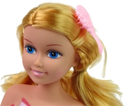 La testa della bambola è dotata di folti capelli biondi, perfetti per vari stili e tecniche di styling.