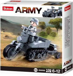 Scopri e crea la tua motocicletta storica con cingoli dell'epoca della seconda guerra mondiale grazie al set Sluban. La plastica ABS di alta qualità e resistenza, con cui sono fatti i pezzi, garantisce un gioco sicuro e una lunga durata.
