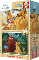 Scopri i puzzle in legno di alta qualità con il tema IL RE LEONE del marchio EDUCA. Nella confezione trovi 2 puzzle da 25 pezzi con tessere grandi e resistenti, ideali per le manine dei bambini. I puzzle si distinguono per colori vivaci e personaggi fiabeschi accattivanti che conquisteranno i piccoli al primo sguardo.