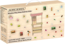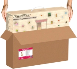 La struttura in legno massiccio e MDF è stabile, resistente e adatta alle mani dei più piccoli. Tutti gli elementi hanno bordi lisci e arrotondati e rispettano gli standard europei di sicurezza dei giocattoli. Grazie alle dimensioni compatte e alla disposizione studiata, la bancarella è perfetta per camerette e sale giochi.