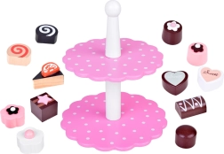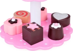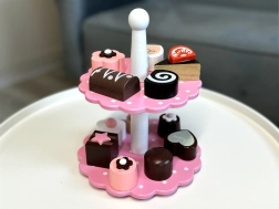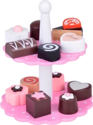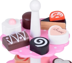 Include vari dolcetti di legno e un supporto a due piani in delicate tonalità pastello, che ricordano il mondo delle dolcezze. Grazie a questo set, ogni gioco diventerà un'avventura deliziosa e gustosa.