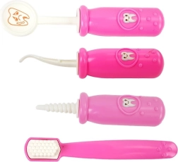 Scoprite il divertente set medico per bambini per piccoli dentisti, che aiuta a eliminare la paura dello studio dentistico e sostiene il gioco creativo. Nella pratica valigetta troverete strumenti odontoiatrici, supporto a capacità, siringa, trapani e anche denti con mascella per esercitarsi in modo sicuro alla cura del sorriso. La struttura in plastica leggera e resistente e le forme amichevoli sono ideali per bambini dai 3 anni.