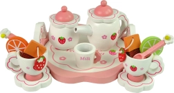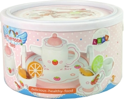 Il set comprende tutto per un perfetto “tè del pomeriggio”: teiera, tazzine con cucchiaini, lattiera e graziosi accessori come fettine di frutta e bustine di tè. I bambini allenano cooperazione, comunicazione e motricità durante il gioco quotidiano.