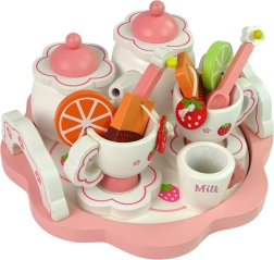 Adorabile set da tè in legno dal design bianco‑rosa con motivi di fragole, ideale per i tè delle bambine e dei bambini. Stimola la creatività, il gioco di ruolo e la motricità fine. Include un vassoio con manici, teiera, 2 tazzine, lattiera, cucchiaini e accessori. Realizzazione sicura in legno, resistente e perfetta come regalo.