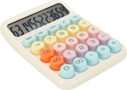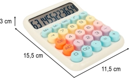 Calcolatrice compatta e alla moda con pulsanti rotondi colorati, che facilitano l'uso. Ideale per calcoli in ufficio, a scuola e a casa.