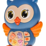 . | Gufo interattivo con funzioni sonore e luminose per bambini dai 6 mesi. Il gufo è realizzato in plastica della massima qualità, resistente agli urti e sicura per i più piccoli, senza spigoli vivi. È prodotto in colori vivaci per attirare l’attenzione del bambino e incoraggiarlo al gioco. Sul pancino del gufo c’è un pannello con pulsanti che attivano i versi degli animali (in prima modalità), melodie, suoni Do-Re-Mi (in seconda modalità) ed effetti luminosi sotto forma di luci lampeggianti sulle ali del gufo. Le modalità si cambiano tramite il pulsante a forma di cuore. Il giocattolo ha il controllo del volume. Funziona con 2 batterie AA 1,5 V (non incluse) .Funzioni del giocattolo: .- adatto a bambini dai 6 mesi, .- realizzato in plastica di altissima qualità in colori brillanti, .- sicuro, senza bordi taglienti, .- resistente agli urti, .- effetti luminosi: ali del gufo luminose, .- effetti sonori: .* modalità con versi di animali: cane, gattino, scimmia, pecora, tigre, elefante, .* modalità con suoni: melodie, suoni Do-Re-Mi. |
