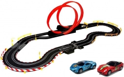 Prolunga il divertimento con le auto rosse e blu in scala 1:43. I controller hanno funzioni per aumentare la velocità e riprodurre effetti sonori di accelerazione. Monta la pista con dimensioni di 155 cm x 60 cm x 37 cm e goditi ore di divertimento.