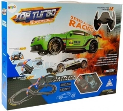 Pista da corsa 1:43 con 2 macchinine Top Turbo con luci, lunghezza 7,6 m