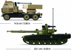 La lunghezza del carro armato è di 23,1 cm e dei veicoli 14,9 cm. Il set è progettato in modo intuitivo e il montaggio semplice supporta l'indipendenza dei bambini. Le dimensioni della confezione sono 47,5x33x6,7 cm, rendendolo un regalo occasionale che cattura con il suo design accattivante.