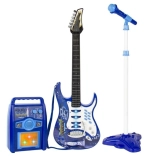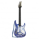 Questa chitarra elettrica blu per bambini è creata per piccole star del rock! Realizzata in plastica di qualità, offre un design realistico con corde metalliche e una facile maneggevolezza grazie alla tracolla inclusa.