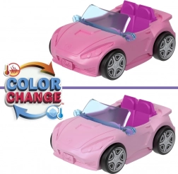 L'auto, una volta immersa in acqua fredda, cambia colore e in acqua calda torna come prima – l'effetto è ripetibile più e più volte. Grazie alle dimensioni, il set si trasporta facilmente ed è un ottimo regalo e un complemento per la collezione. Combinalo con altri set di Mini Barbie Land e crea una piccola città in miniatura.