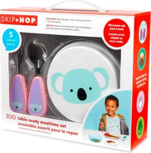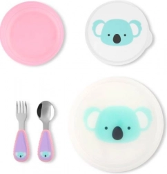 Il grazioso set pappa ZOO koala incoraggia l’autonomia a tavola dei bambini dai 12 mesi. Il set include un piatto e una ciotola con coperchio, entrambi con fondo antiscivolo, e anche posate in acciaio inox. Il tutto è senza BPA, PVC e ftalati; piatto e ciotola sono adatti a lavastoviglie e microonde e le posate si possono lavare in lavastoviglie.