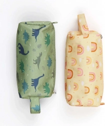 Presentiamo un astuccio per pastelli elegante e pratico con motivo arcobaleno. Realizzato in poliestere sostenibile, ideale per i bambini in viaggio o a scuola.