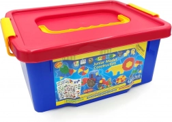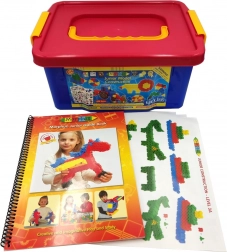Il set include 424 pezzi diversi a forma di quadrati, triangoli e elementi di collegamento che sviluppano l'immaginazione e la creatività dei bambini.
