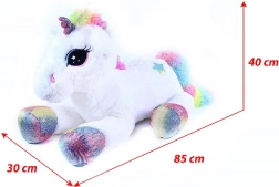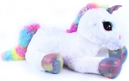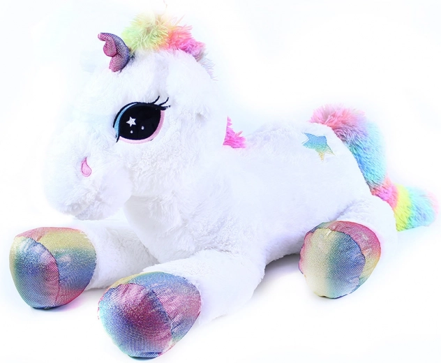 Il dolcissimo unicorno di peluche Funkie trasforma ogni cameretta in un regno delle fiabe. Con la sua imponente lunghezza di 85 cm è un ornamento impossibile da non notare, ed è al tempo stesso morbido e vellutato al tatto e un ottimo compagno per il gioco e il relax. Un regalo ideale per piccole e grandi principesse.