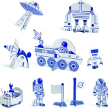 UFO, rover, antenna satellitare, robot e altri elementi ampliano il gioco e sviluppano creatività e motricità fine.