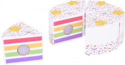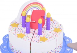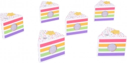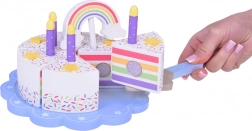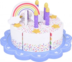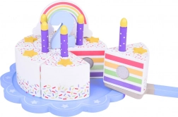 Sulla cima della torta c'è un arcobaleno colorato removibile che aggiunge fascino all'intero set. Ogni pezzo di torta ha un posto per una candela, rendendolo una scelta perfetta per giocare alla festa di compleanno.