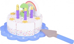 La torta è realizzata in legno di alta qualità, che garantisce la sua durata e sicurezza per il gioco dei bambini.