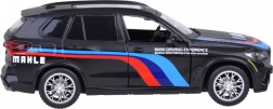 Il modello dell'auto BMW X5 M è realizzato con precisione e attenzione ai dettagli, apprezzato da ogni appassionato di auto grande e piccolo. Grazie alla carrozzeria in metallo e alle ruote in gomma, il pavimento rimane inalterato durante il gioco. Il telaio è realizzato in plastica, il che aumenta la leggerezza.