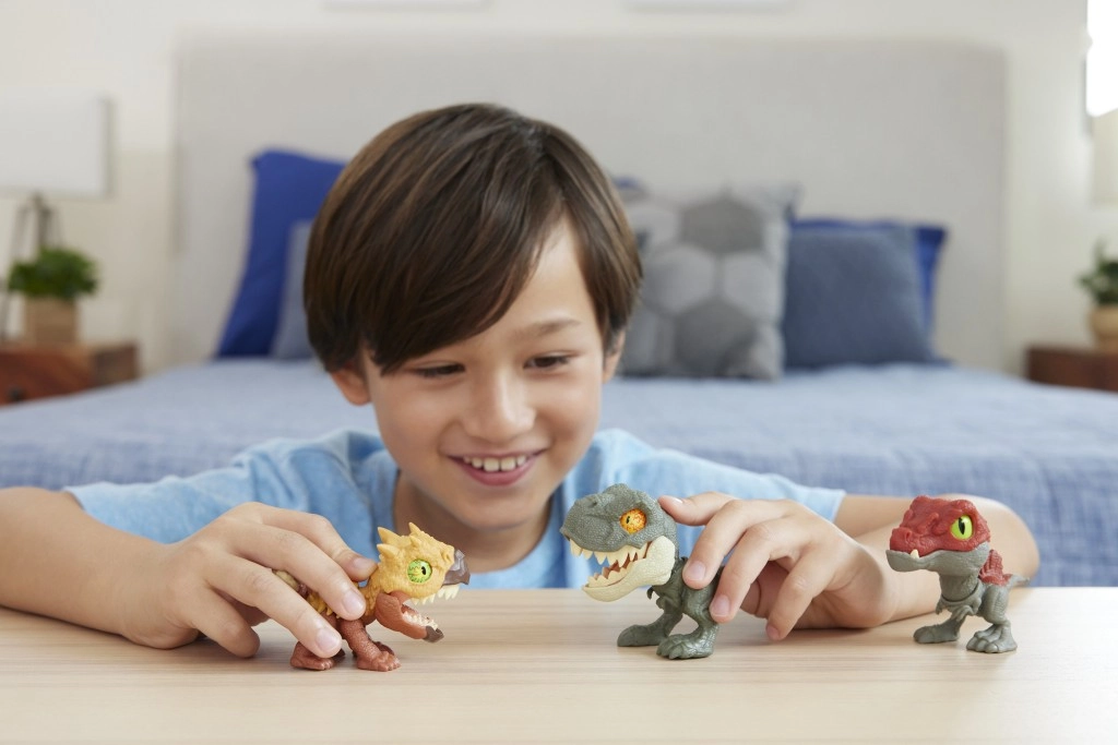 Scopri la collezione Jurassic World – piccoli grandi morditori, mini figure di dinosauri compatte con grande personalità. Sono teneramente toste, ideali per gioco d’azione e per esposizione da collezione. Texture dettagliate, occhi espressivi e costruzione robusta garantiscono divertimento a casa e in viaggio. Colori e aspetto possono variare.