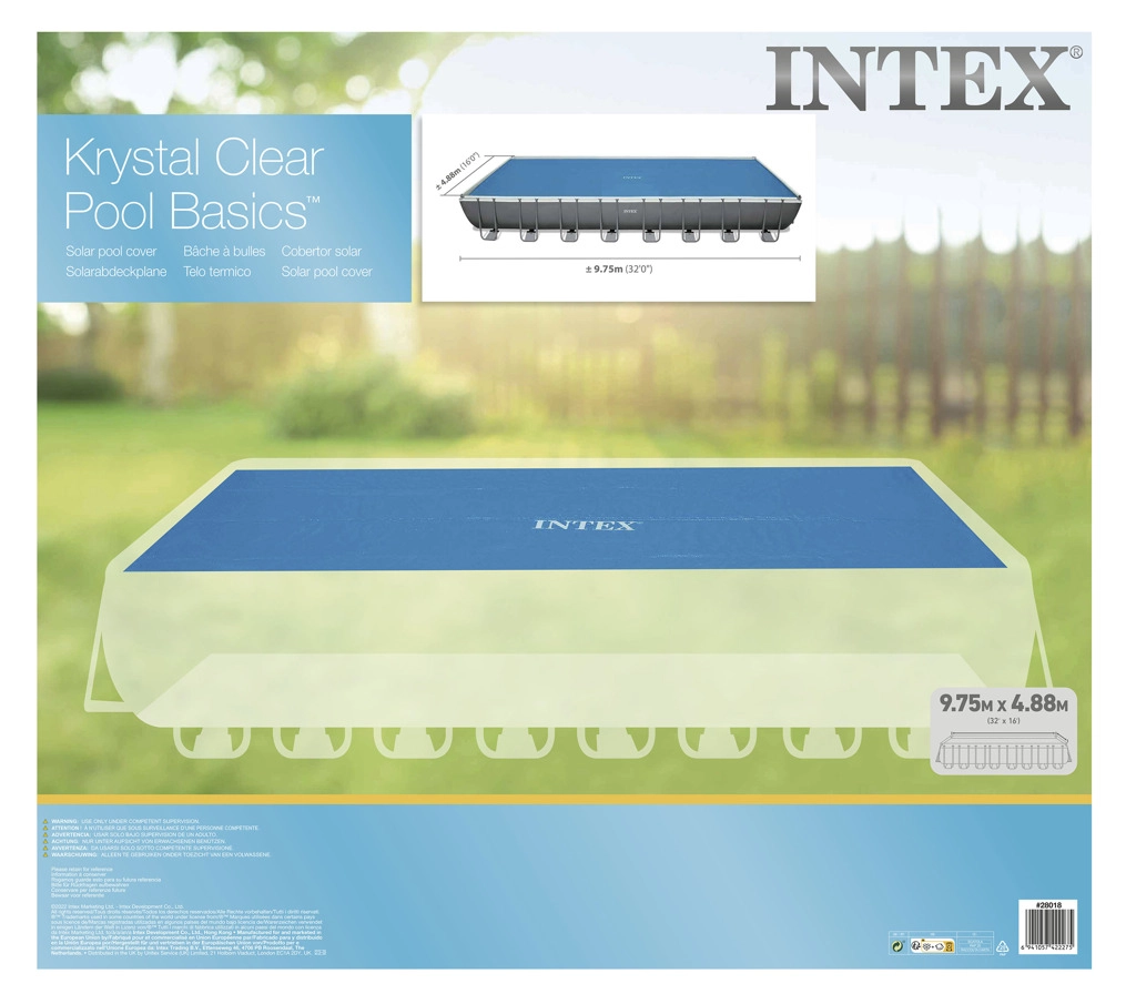 Il telo solare per piscina Intex è la scelta ideale per mantenere la temperatura dell’acqua della piscina e ridurre l’evaporazione. Questo telo è destinato a piscine di dimensioni 9,75 × 4,88 m, corrispondenti a 960 × 466 cm.