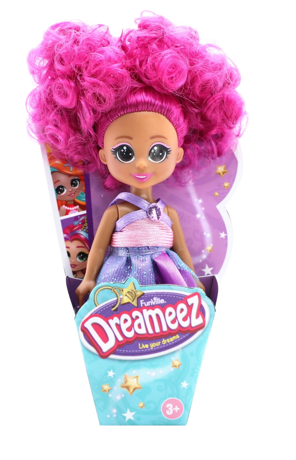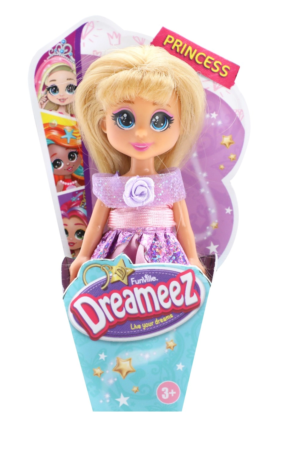 Dreameez mini principessa nel cono è il compagno ideale per i piccoli amanti delle fiabe. Questa adorabile bambolina misura circa 12 cm ed è vestita con un elegante abito da principessa. Ha lunghi capelli che i bambini possono pettinare e acconciare secondo la propria fantasia, offrendo ore di divertimento creativo.