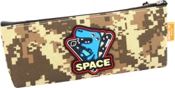 Una custodia per matite di dimensioni gradevoli con motivo dinosauro cosmico in motivo mimetico digitale. Il suo materiale tessile resistente e chiusura pratica con zip garantiscono una lunga durata anche con un uso intenso.