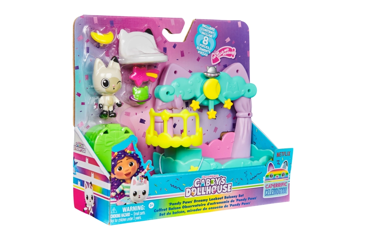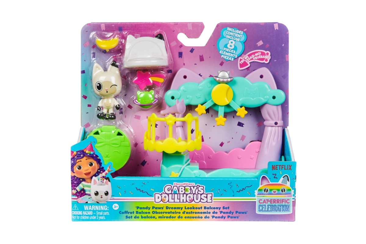 la casa delle bambole di gabby: balconcino di panda-micio – set di personaggi e accessori