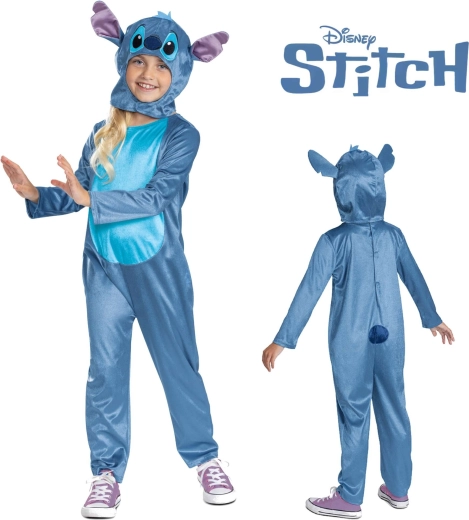 Trasformate il vostro bambino nel suo eroe preferito, STITCH, e regalategli infinite esperienze di gioco. La tuta intera in morbido poliestere con pancia a contrasto ha un taglio comodo per un movimento libero e un cappuccio con orecchie evidenti e dettagli ricamati. Perfetta per carnevale, feste in maschera, eventi scolastici e giochi in costume a casa.