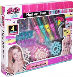 Crea bellissime unghie con il set per la decorazione delle unghie Nail Art! Comprende quattro penne colorate per smalto, decorazioni, limetta e altri accessori.