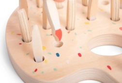 Con l'inserimento e la rimozione dei pennelli di legno, i bambini sviluppano la motricità fine. Il design ergonomico facilita la manipolazione.