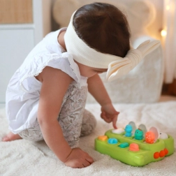 Scopri il divertente giocattolo educativo WOOPIE, dove premendo i pulsanti, azionando gli interruttori o ruotando la rotellina i dinosauri saltano fuori! Sviluppa in modo eccellente la motricità fine, la coordinazione mano-occhio e la comprensione del rapporto causa-effetto. La struttura solida e resistente con un attraente design a forma di dinosauro garantisce lunga durata e ore di gioco gioioso.