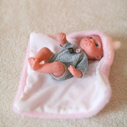 La bambola è dotata di una copertina rosa che può trasformarsi in tenda, marsupio oppure fungere semplicemente da coperta ideale per i giorni più freschi. La copertina è decorata con orecchiette, rendendo la bambola ancora più dolce e unica.