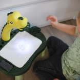 Il proiettore a forma di dinosauro proietta le immagini direttamente sul tavolo, così i bambini possono ricalcare con facilità. Sono disponibili 24 modelli su 3 dischi per infinite attività creative.