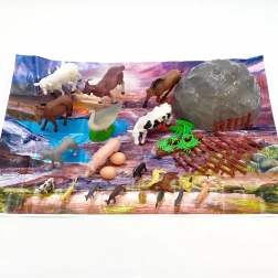 - figurine di animali da fattoria, recinto, rocce, piante, tappetino da gioco, mappa tematica, secchio/box portaoggetti