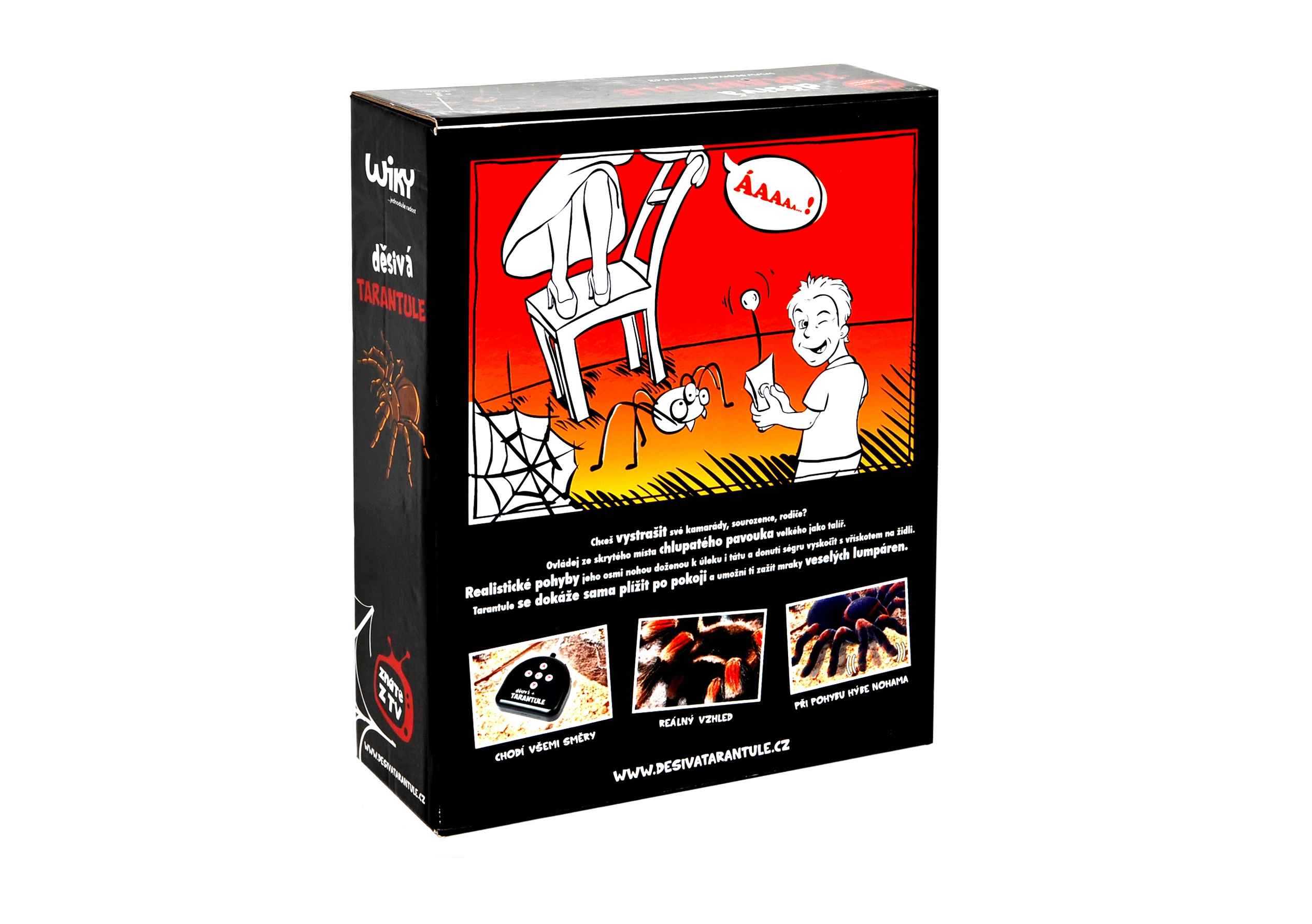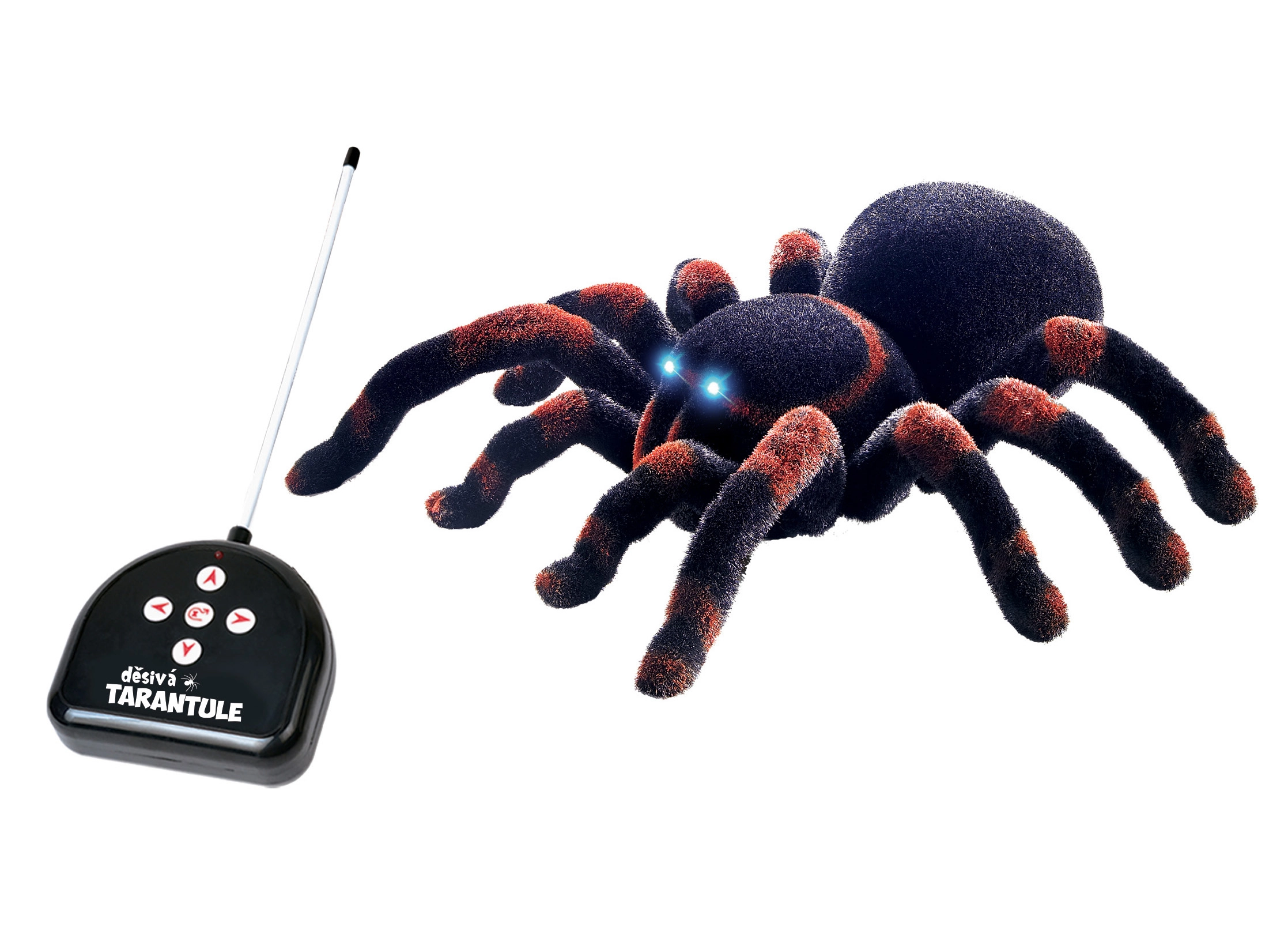 Spaventa amici e fratelli con una tarantola RC realistica sulla frequenza 27 MHz. Il ragno peloso lungo 22 cm si muove come vero grazie alle sue otto zampe e i suoi occhi luminosi creano un'atmosfera davvero inquietante.