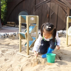 La struttura stabile in legno di qualità resiste al gioco quotidiano nella sabbiera. La realizzazione sicura e la cura dei dettagli lo rendono un ottimo complemento per l’uso domestico e per gli ambienti educativi – scuole dell’infanzia, aree gioco e cortili scolastici.