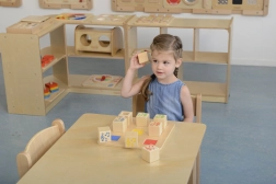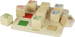 Otto blocchi di legno che emettono suoni diversi quando vengono scossi. I bambini devono trovare coppie di blocchi con gli stessi suoni, sviluppando così l'udito e la motricità fine.
