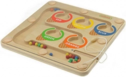 Zone colorate chiaramente indicate e biglie in cinque colori guidano i bambini al riconoscimento naturale e alla classificazione dei colori.