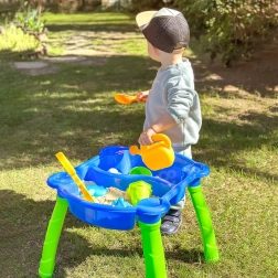 La struttura in plastica, leggera ma robusta, si monta in pochi istanti. Il tavolino è perfetto per uso esterno e interno: in giardino, sul balcone, nella sala giochi, in spiaggia o nella sabbiera. I colori vivaci e le forme piacevoli invitano al gioco e mantengono alta l’attenzione dei bambini.