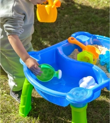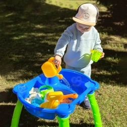 Scopri il divertimento con acqua e sabbia con il tavolino WOOPIE 2in1. I due scomparti separati permettono ai bambini di versare l’acqua in uno e la sabbia nell’altro, così possono raccogliere, travasare, setacciare e modellare senza disordine intorno. Il set di accessori stimola il gioco sensoriale, sviluppa la motricità fine e la creatività.