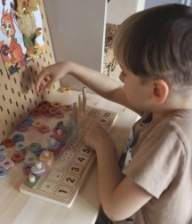 Calcolatore in legno e giocattolo di smistamento del rinomato produttore di giocattoli PolarB, ispirato ai principi di Montessori, è destinato a bambini dai 3 anni in su. Questo giocattolo facilita e rende piacevole l'apprendimento dei numeri e lo sviluppo delle capacità motorie.