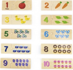 Questo fantastico set di puzzle in legno di VIGA si concentra su praticare il conteggio e riconoscere i numeri. Il bambino impara a contare facilmente, a riconoscere i numeri e assegnare il giusto numero di oggetti a ciascun numero. Grazie ai colori attraenti e alle immagini come animali, frutti o veicoli, i bambini imparano a conoscere il mondo intorno a loro. Può anche sviluppare concentrazione, vocabolario e pensiero logico.
