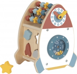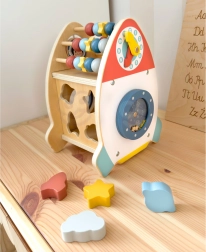 Il razzo in legno è un giocattolo multifunzionale che offre sei diverse attività per lo sviluppo delle abilità dei bambini: