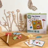 - 30 forme in legno, 40 chiodini, 10 schede bifacciali, base in sughero, martelletto in legno