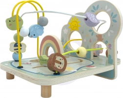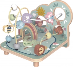 Il labirinto di perline a tema foresta, in massello di legno, colpisce per la lavorazione di qualità, i colori pastello e le simpatiche illustrazioni di animaletti, arcobaleno e sole. I bambini spostano perline e forme lungo tre percorsi sinuosi, allenando la precisione dei movimenti delle dita e la concentrazione, e provano gioia nel completare il tracciato.