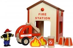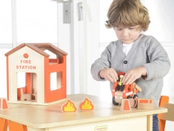 Questa stazione dei pompieri in miniatura è realizzata in legno, garantendo la sua durata e sostenibilità ecologica. Include una stazione dei pompieri, due figurine di pompieri, una autopompa e vari accessori come fiamme, coni e barili pericolosi. Permette ai bambini di simulare interventi in situazioni di incendi sviluppando la loro logica, abilità sociali e concentrazione.
