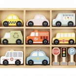 - Il set include 8 veicoli diversi: taxi, auto privata, food truck, camion della spazzatura, pompieri, scuolabus, ambulanza, auto della polizia