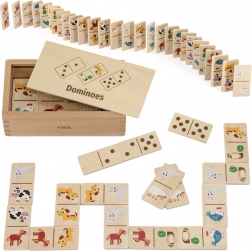 Il domino in legno 2in1 VIGA offre doppio divertimento e apprendimento in un unico set. I bambini possono alternare il gioco con i classici puntini e quello di abbinamento degli animaletti, favorendo un apprendimento naturale e mantenendo alta l’attenzione. Grazie alla robusta costruzione in legno, il set è resistente e adatto al gioco quotidiano a casa e in viaggio.