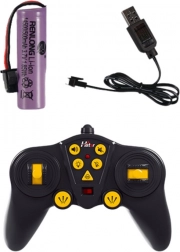 Il veicolo è alimentato da una batteria 3.7V Li, facilmente ricaricabile con il cavo USB incluso, eliminando la necessità di frequenti sostituzioni di batterie. Il telecomando richiede 2 batterie AA da 1.5V (non incluse).